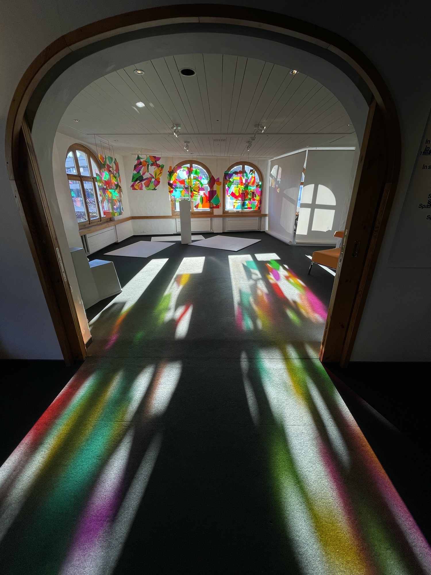 Sloppy Giacometti von Louis Henri Meyer in sakraler Konversation mit Valerie Lipscher eine Ausstellung im Spazi Spezial in der Arena in Flims.